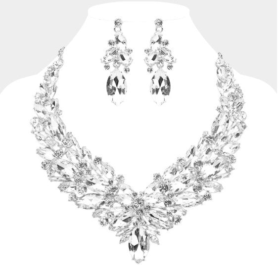 Marquise Cluster Evening Necklace Set