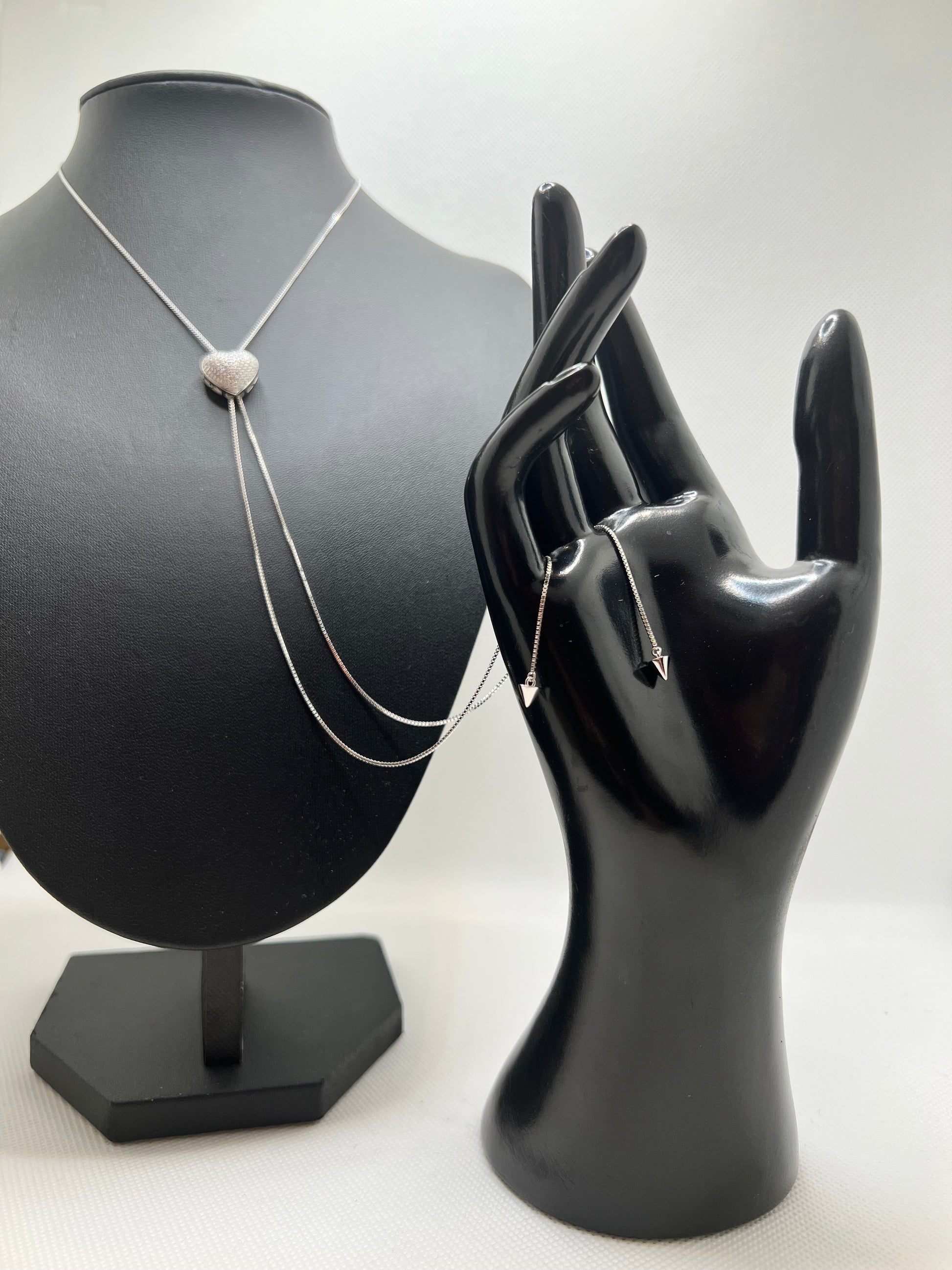 This Sterling Silver Heart Necktie Necklace is the perfect, sophisticated piece of jewelry to add to your collection. The high quality sterling silver is crafted into a delicate necktie design accompanied with a pave heart charm. Show off your luxurious style with a necklace that adds just the right amount of sparkle to your look. The 22" length make it easy to add to any neckline.